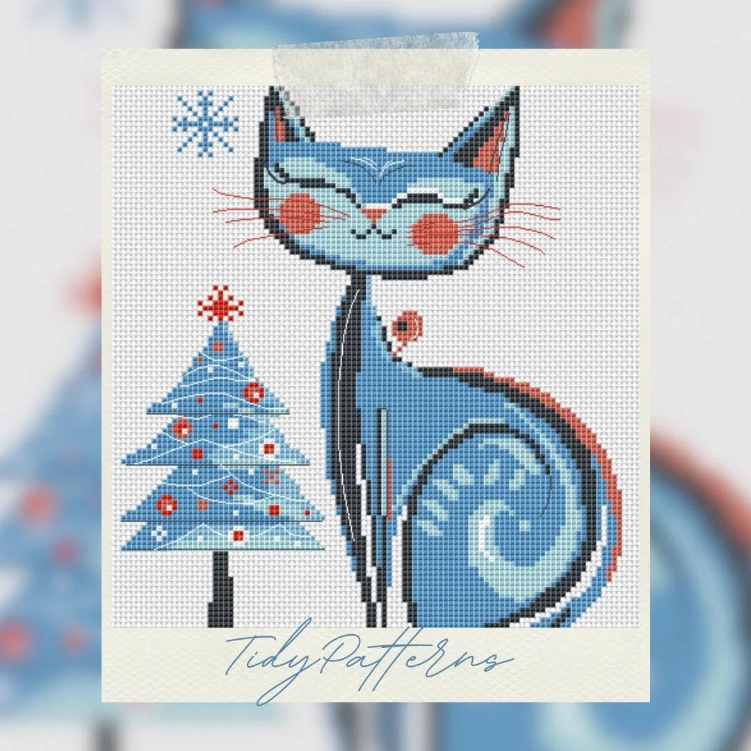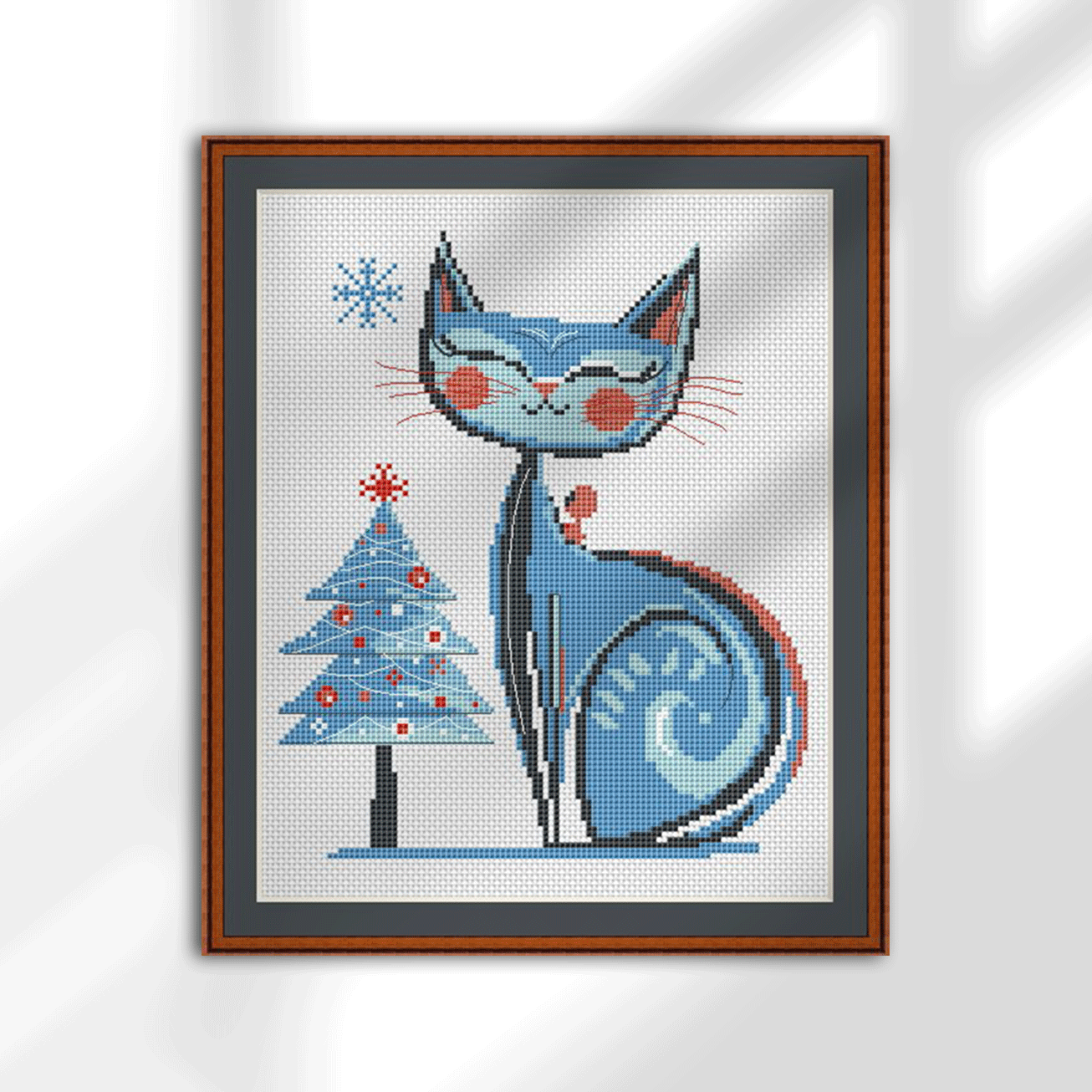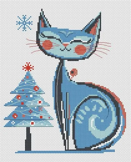 Blue Christmas Cat, Cross Stitch Pattern, Christmas Decoration, Holidays, PDF, instant download, CAT22