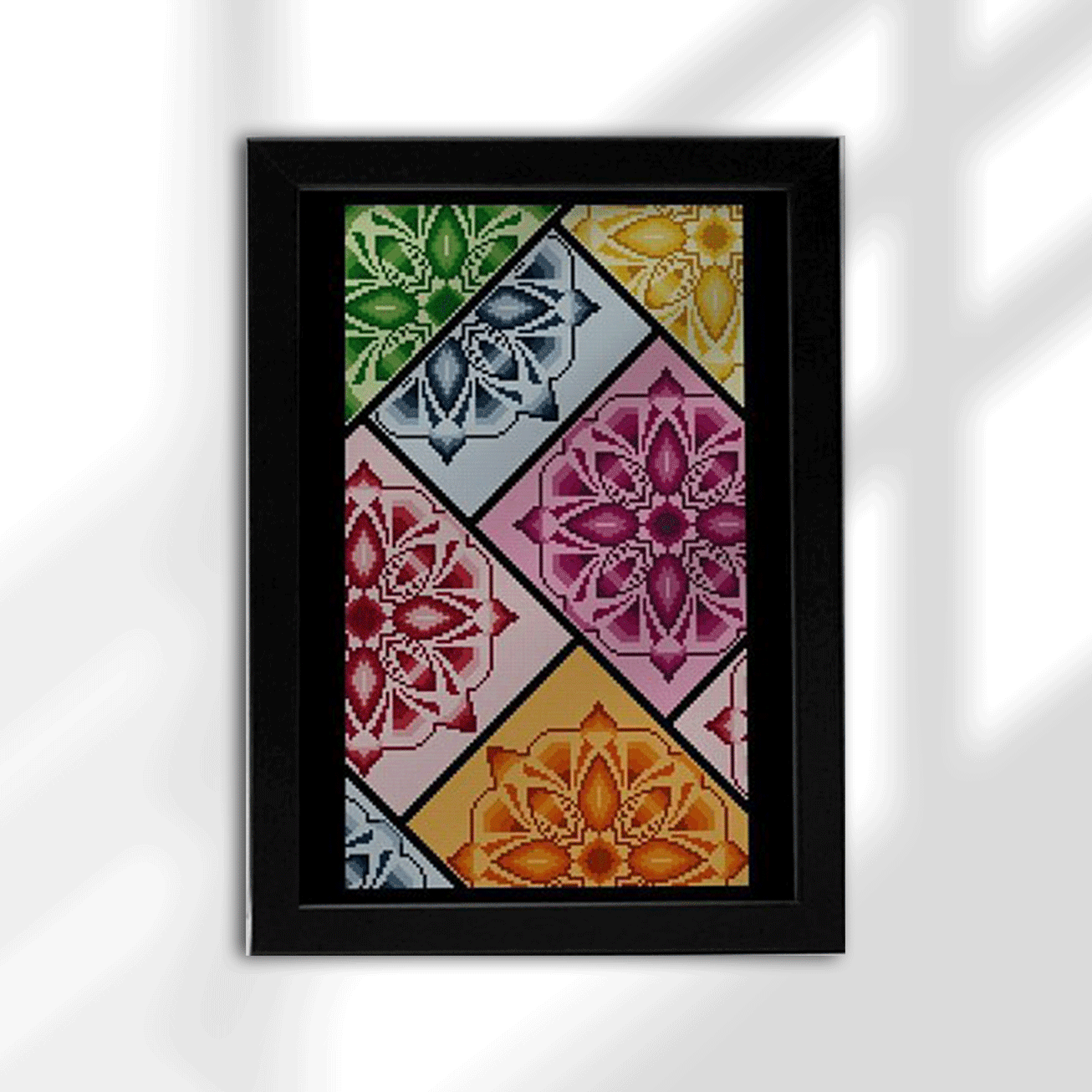 Mandala cross stitch pattern, Geometric design, Rainbow colors,modern cross stitch, PDF, instant download, MDL07