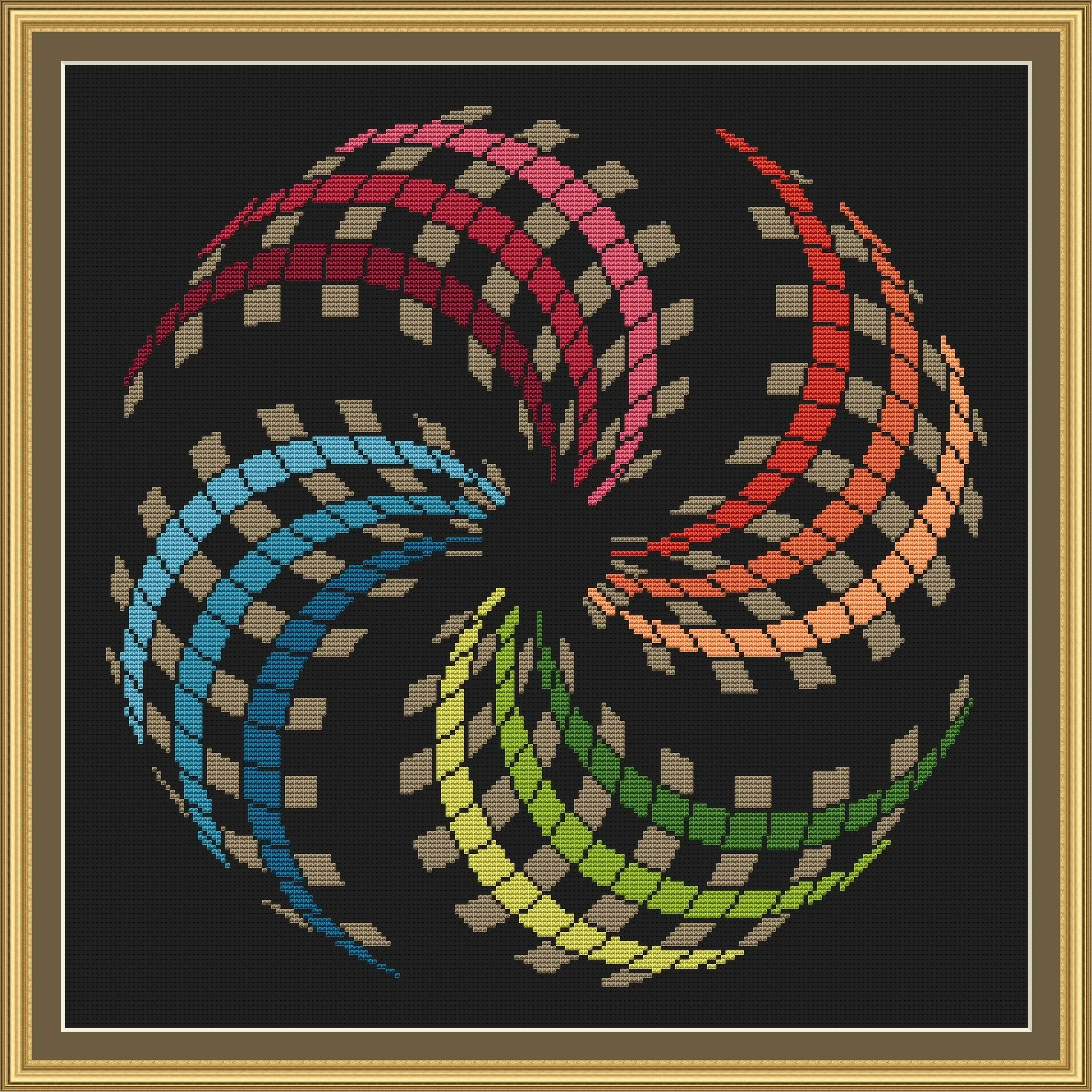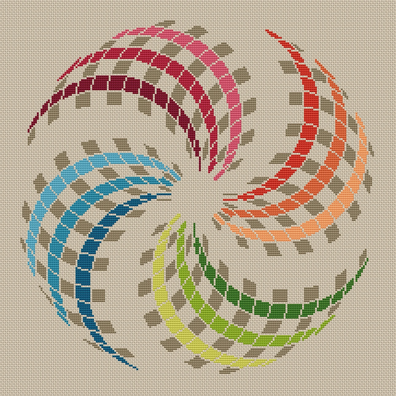 Mandala cross stitch pattern, Geometric design, Rainbow, modern cross stitch, PDF, instant download, MDL25