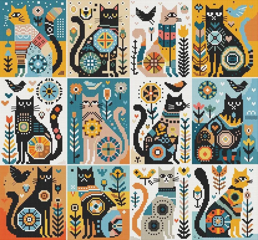 Set of 12 cats, cross stitch pattern, modern cross stitch, PDF, instant download, CAT13
