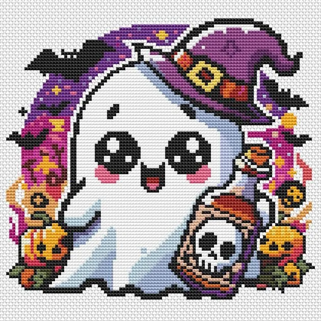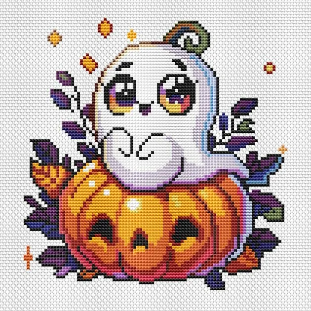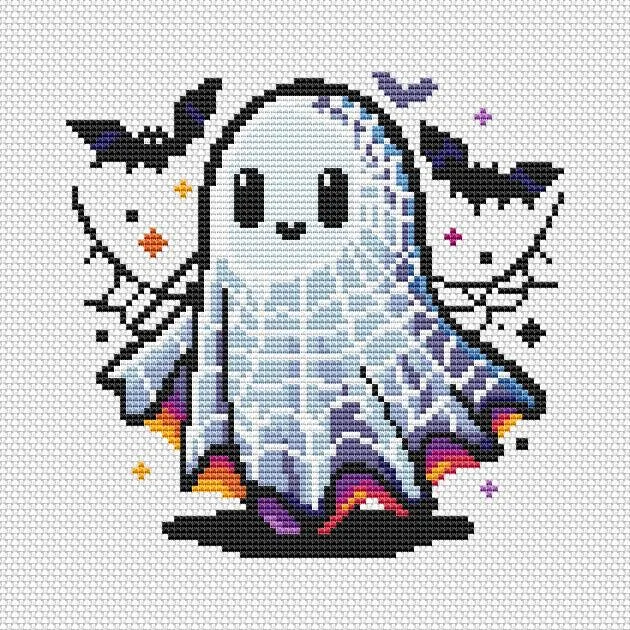 SET of 12 Halloween Ghost, cross stitch pattern, Autumn, fall, Holidays, modern cross stitch, PDF, instant download, HAL24