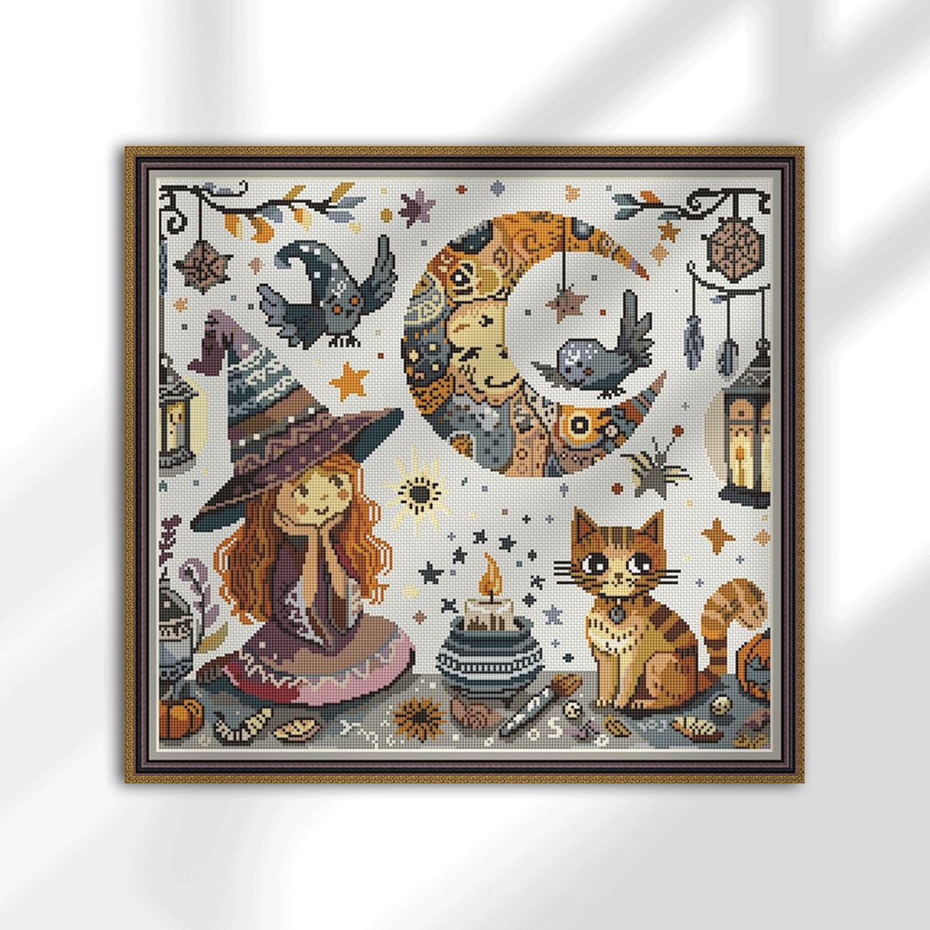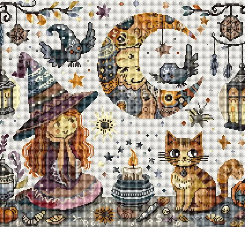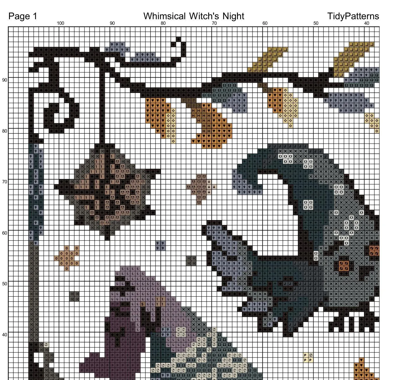 Whimsical Witch’s Night, cross stitch pattern, modern cross stitch, PDF, instant download, HAL32